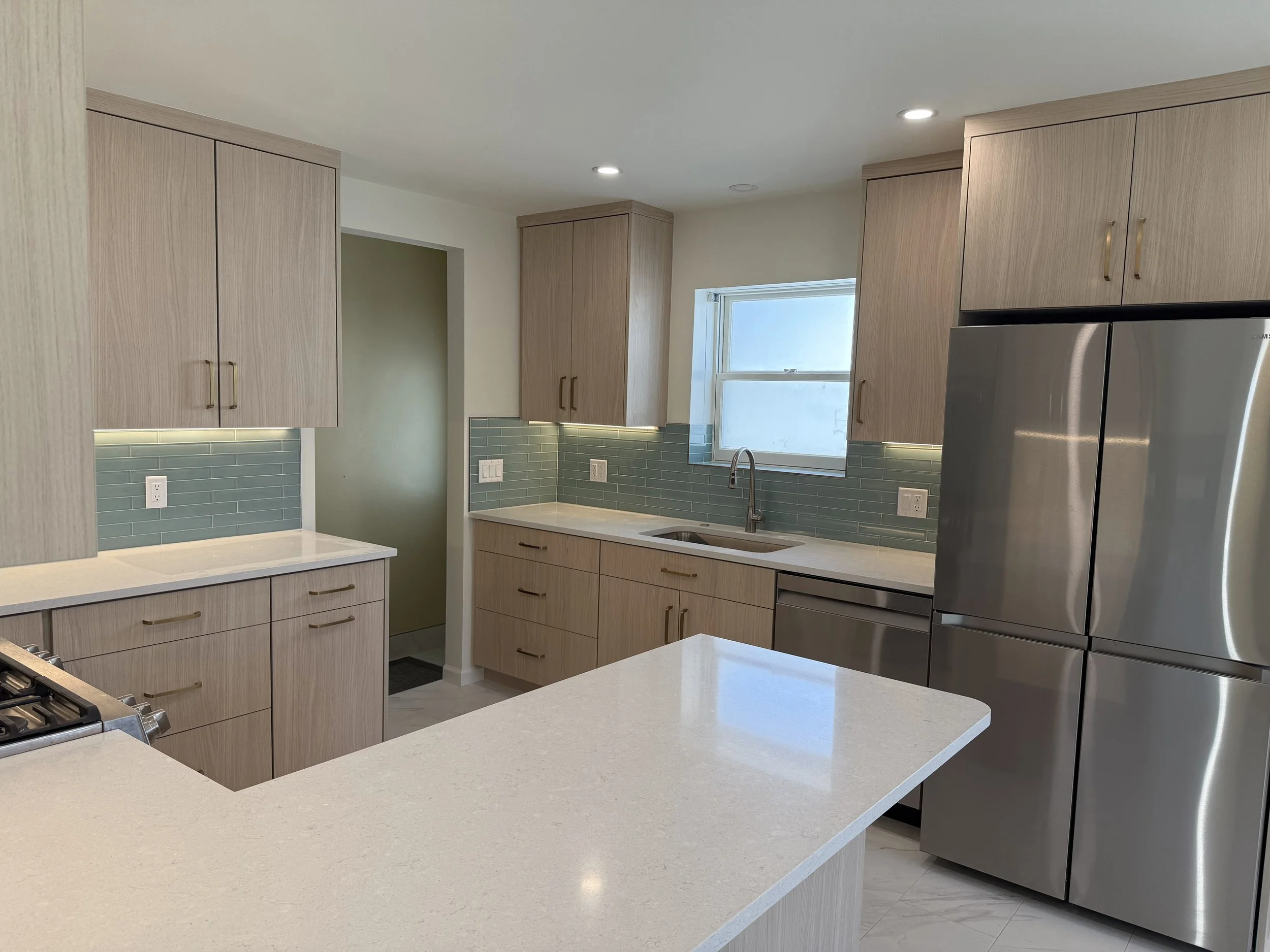 We started by adding dedicated circuits for the microwave, dishwasher, and countertop appliances. Then we installed new GFCI-protected outlets throughout the kitchen for better safety and convenience. The Johnsons also wanted brighter, more efficient lighting, so we added recessed LED fixtures and under-cabinet lights to give them clean, even illumination across the whole space. Once everything was wired, tested, and inspected, their contractor was able to finish out the remodel knowing the electrical work was solid.